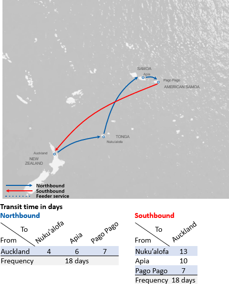 • Auckland to East Pacific every 18 days